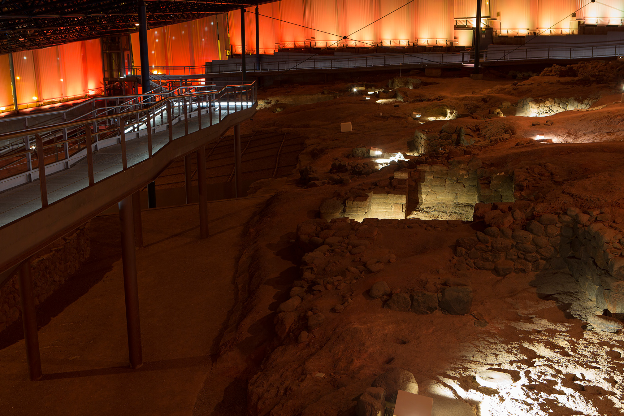 La nova il·luminació de la Cueva Pintada, del jaciment i del museu ha millorat la seva estratègia de conservació preventiva i d’estalvi energètic mitjançant la incorporació de tecnologia LED. Així mateix, ha ajudat a la posada en valor del jaciment, a la seva comprensió visual i a la didàctica de la presentació. S'atén especialment la il·luminació de la pell translúcida del perímetre de tancament vertical instal·lant un sistema dinàmic RGB que crea una escenografia per a les visites nocturnes, ubica visualment el jaciment en l'entorn i l'emmarca com un element singular de gran valor de la ciutat sense provocar contaminació lumínica.