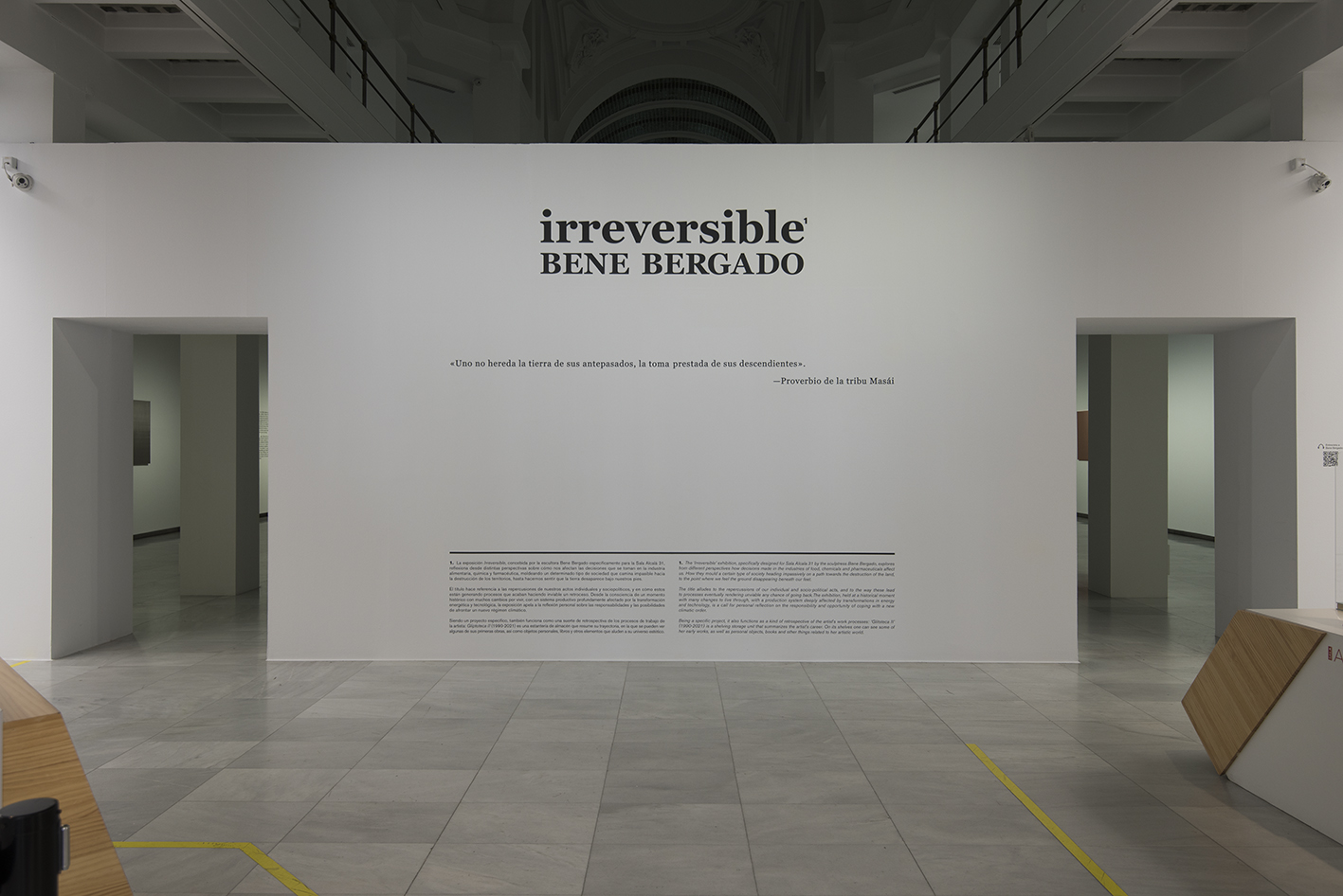 Installation by the sculptor Bene Bergado at the Sala Alcalá 31, former building of the Banco Mercantil e Industrial, on the theme of the welfare economy. It consisted of a collection of large-format and audiovisual pieces that highlighted the artist's creative commitment to a social model that is moving inexorably towards the destruction of territories.