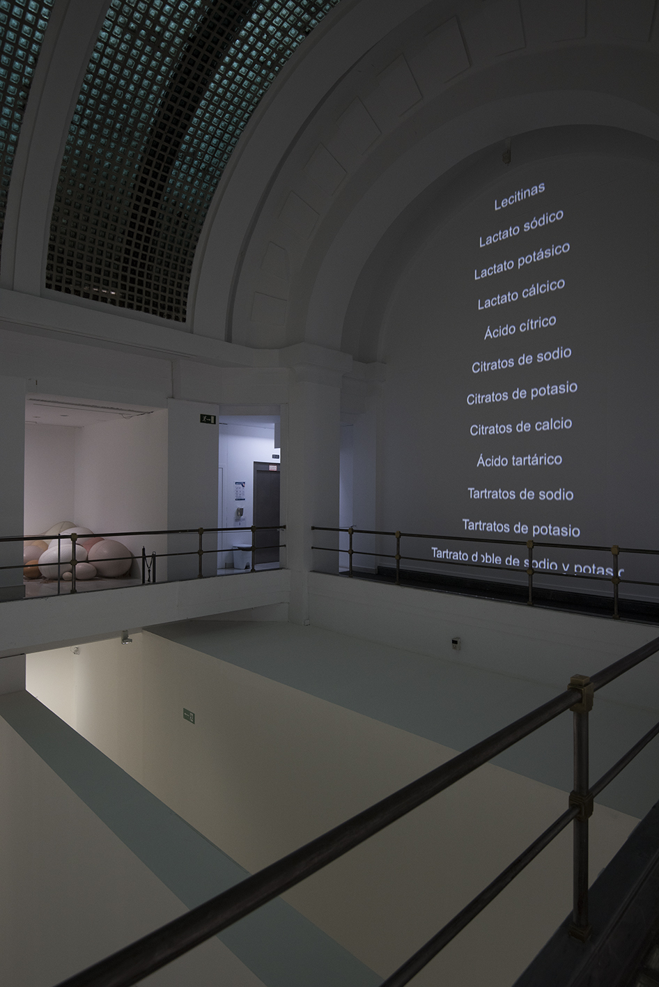 Following the artist's intention of stirring consciences, the upper part of the central nave housed the work «Prospect», a large-format audiovisual projection of the list of food additives of the European Union that ran across the screen as if they were film credits.