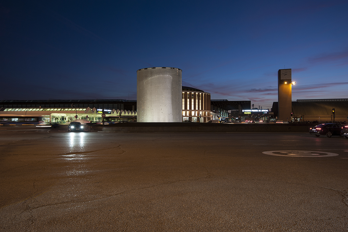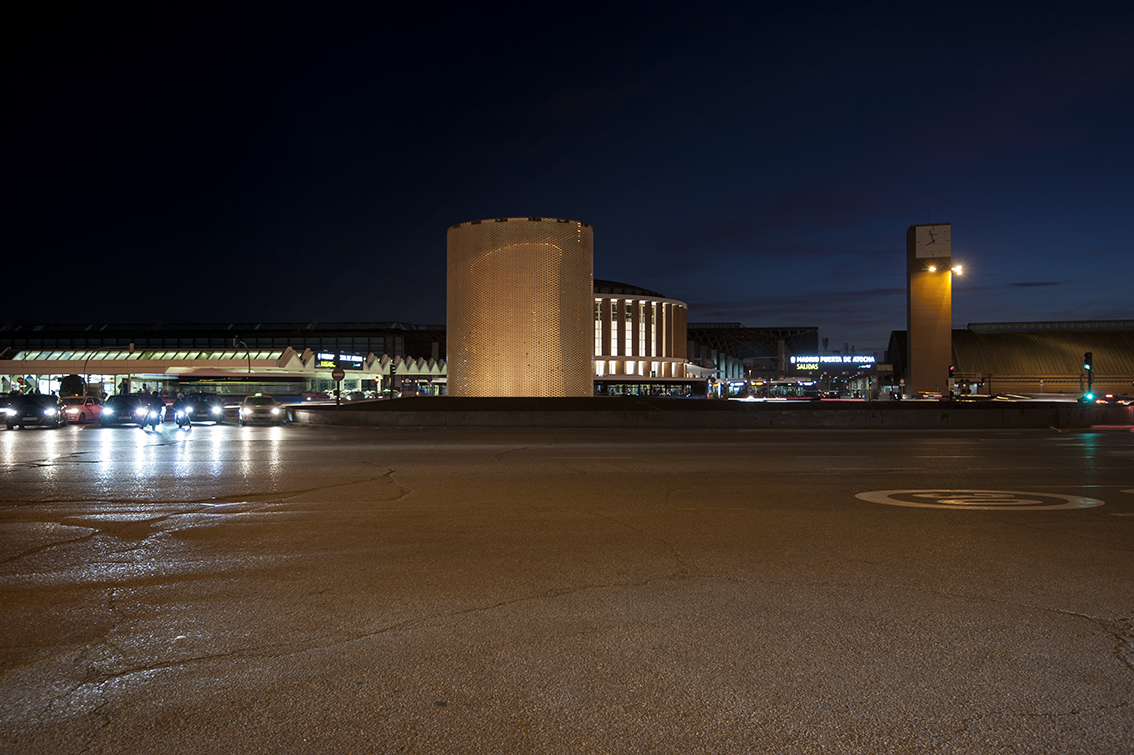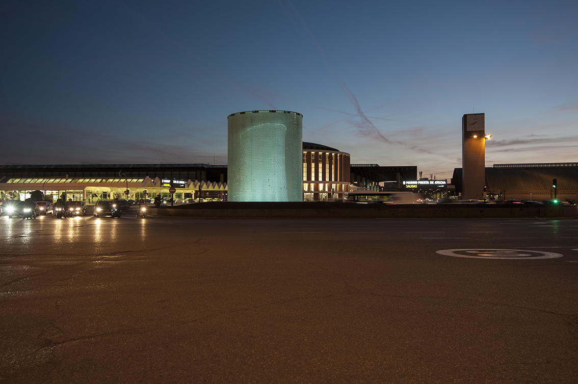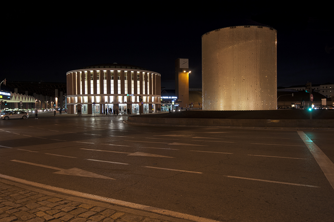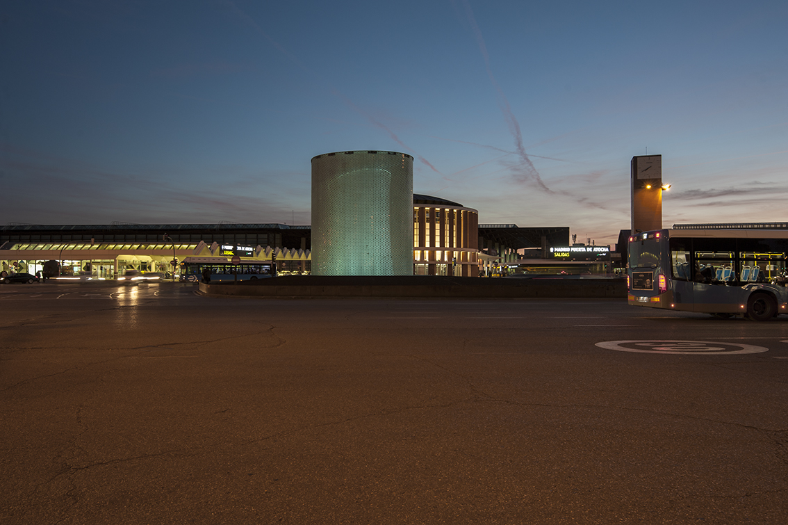 Apart from significantly reducing the power used, a perimeter metal ring was installed under the glass roof as a reflective surface which, in addition to reducing lighting pollution, returns much of the luminous flux towards the inside, thus achieving a uniform value throughout the lateral development of the cylindrical shape and a correct perception of the interior shape that contains the graphics. The design of the dynamic lighting sequences was carried out by María Gil de Montes and the programming by César Linares.