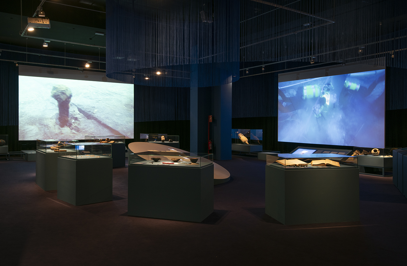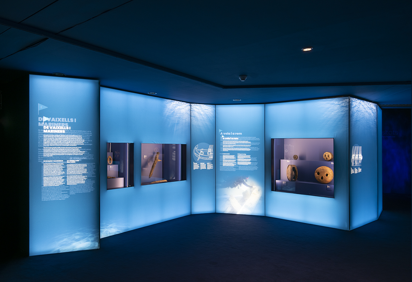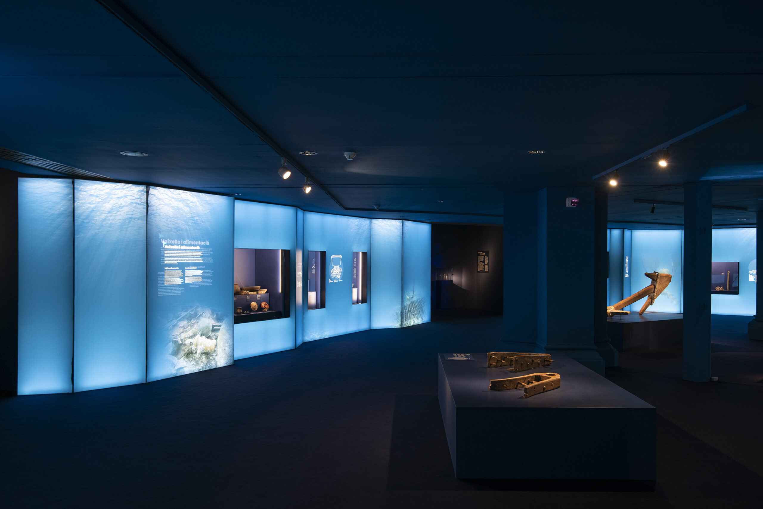 Exposición inmersiva que propuso un recorrido por los trabajos realizados por el Centro de Arqueología Subacuática de Cataluña y los oficios que lo componen, con ocasión del 30 aniversario de su creación. La muestra contaba con más de 200 piezas obtenidas durante las excavaciones en pecios, presentadas en una museografía envolvente que simulaba el entorno marino a través de grandes paneles y proyecciones, y de una cuidada iluminación que respondía a criterios estéticos y conservativos. Una historia sumergida que dio a conocer a todos los públicos la riqueza y diversidad del patrimonio subacuático catalán.