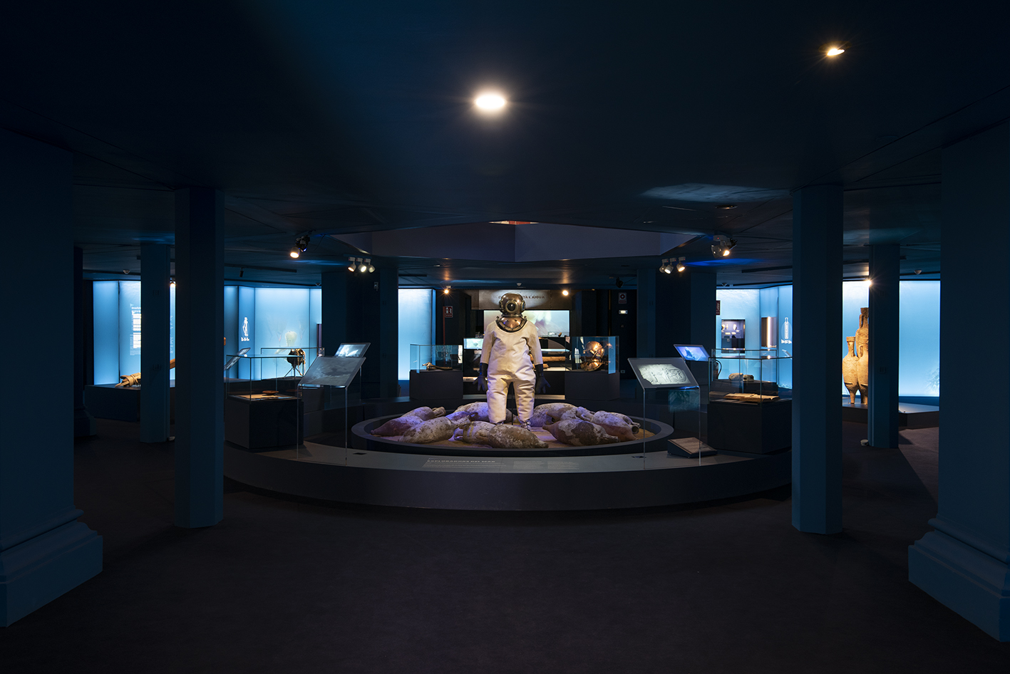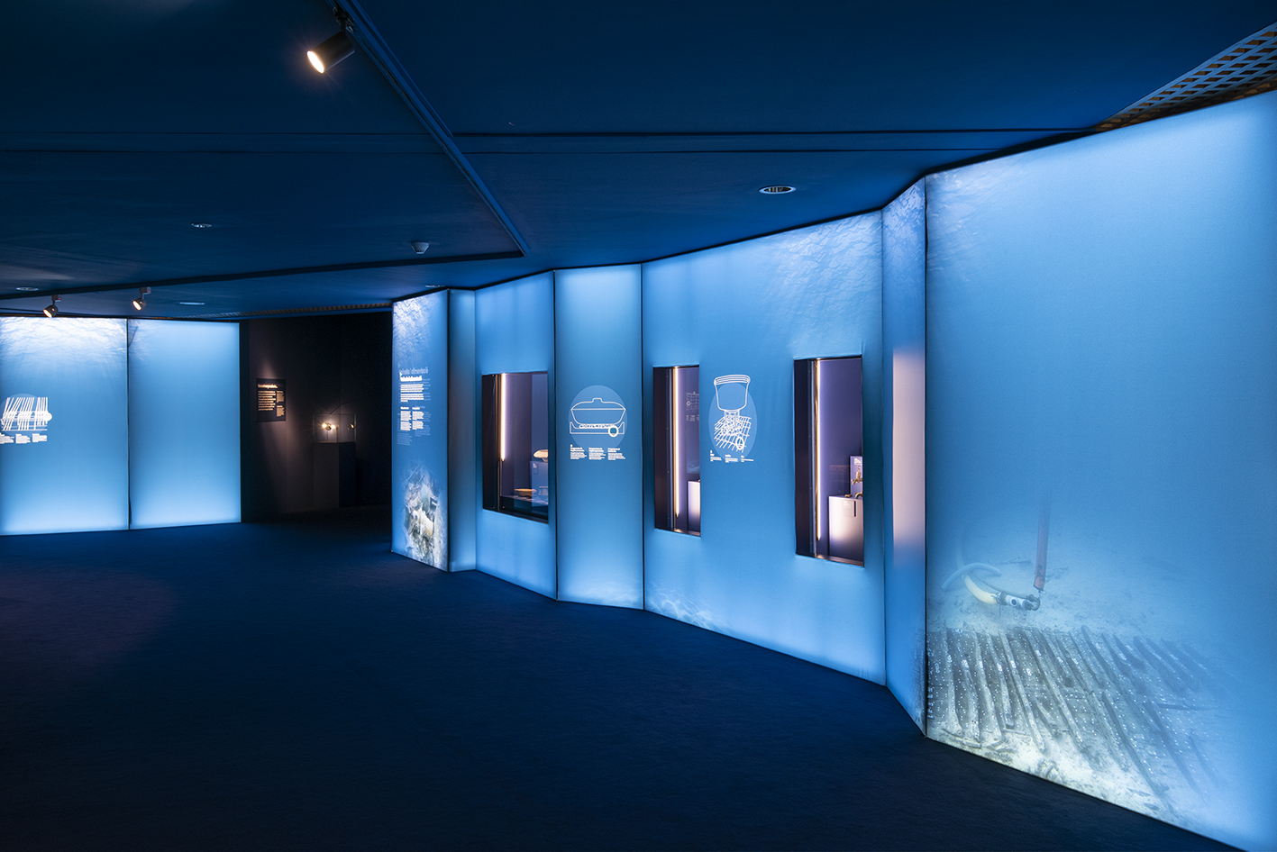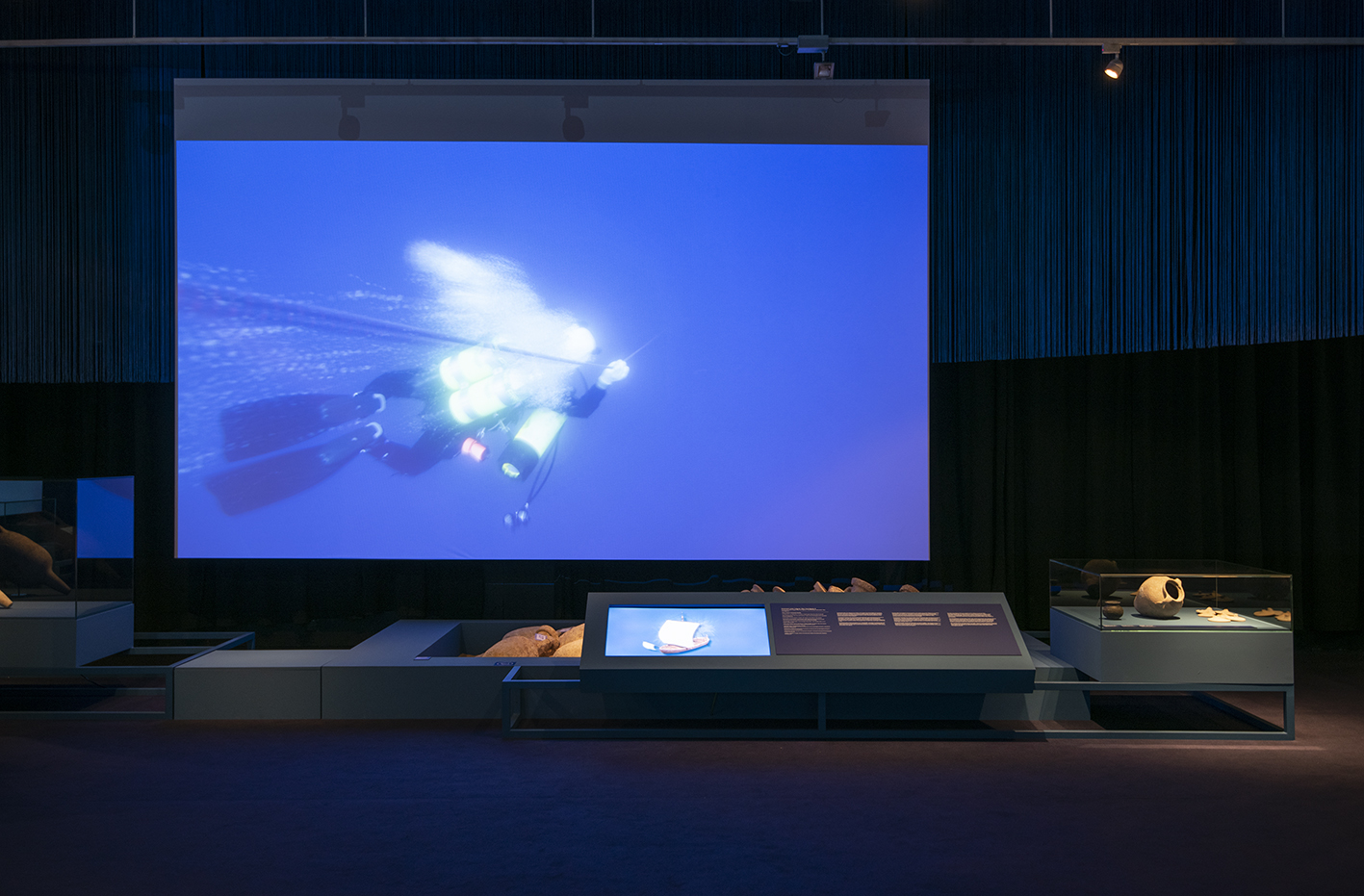 Exposición inmersiva que propuso un recorrido por los trabajos realizados por el Centro de Arqueología Subacuática de Cataluña y los oficios que lo componen, con ocasión del 30 aniversario de su creación. La muestra contaba con más de 200 piezas obtenidas durante las excavaciones en pecios, presentadas en una museografía envolvente que simulaba el entorno marino a través de grandes paneles y proyecciones, y de una cuidada iluminación que respondía a criterios estéticos y conservativos. Una historia sumergida que dio a conocer a todos los públicos la riqueza y diversidad del patrimonio subacuático catalán.
