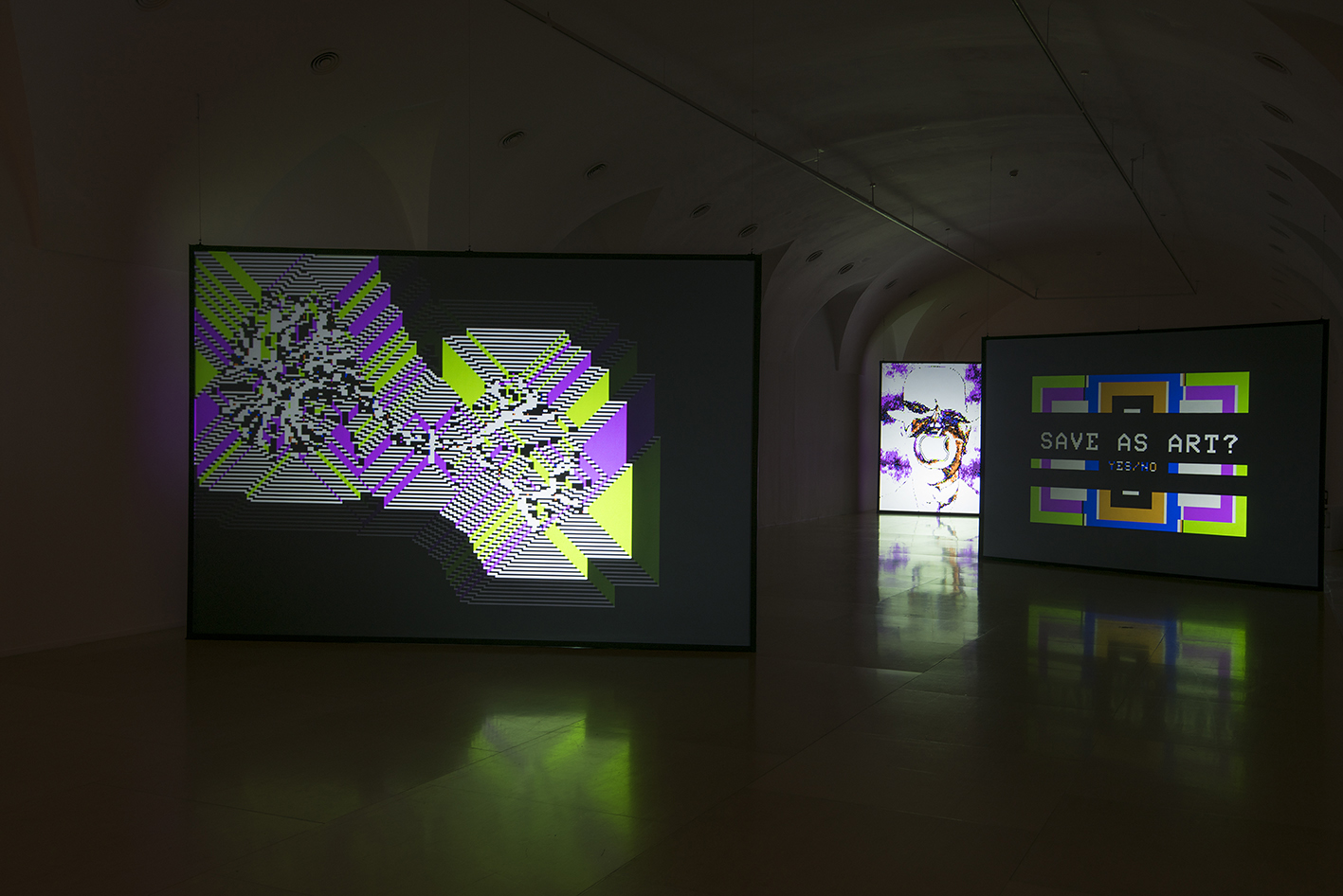 Paralelamente, se mostró su proceso creativo a partir de la exhibición de trabajos en papel y proyecciones digitales de gran formato en las que se podía observar la deriva experimental de las imágenes, su investigación del color y la técnica de producción computarizada.