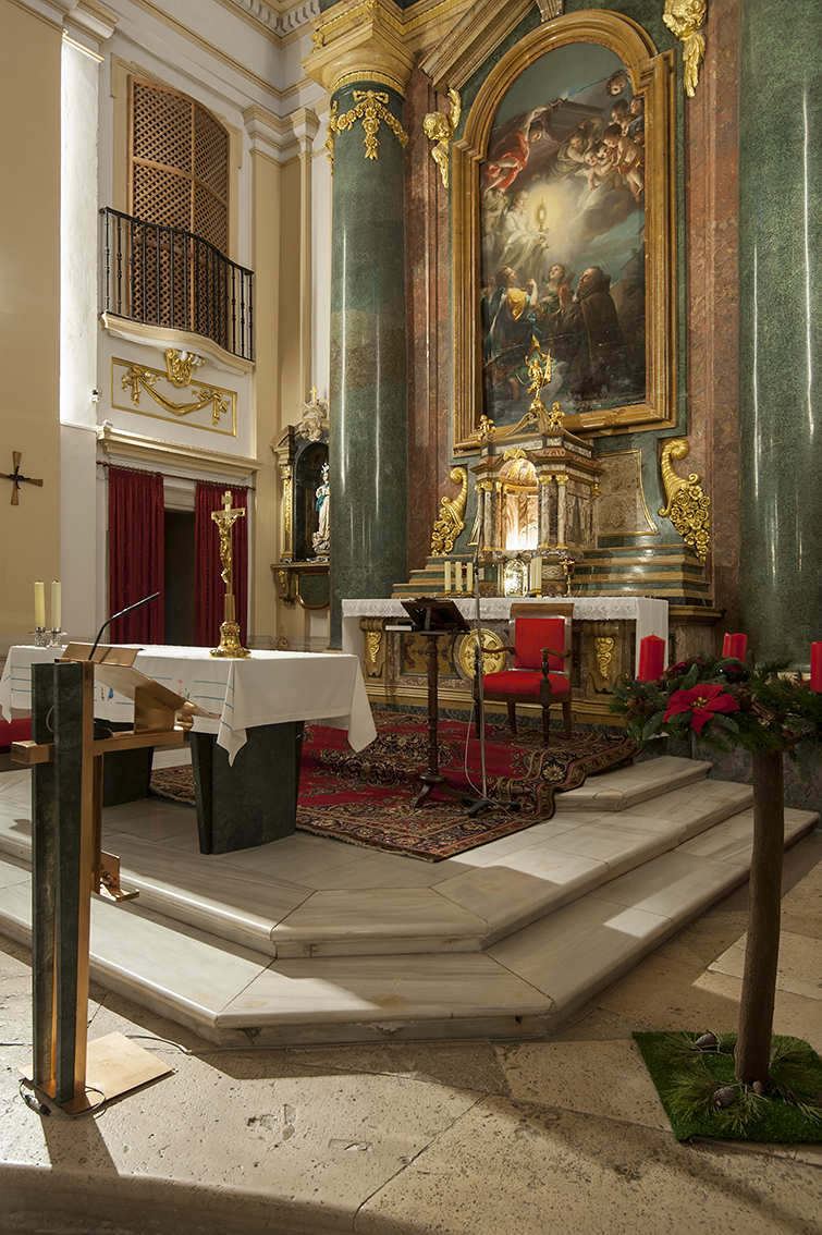 Una iluminación indirecta en las cornisas del crucero y capilla mayor, permiten una somera lectura de la morfología de la arquitectura. Esta iluminación se equilibra con la que se instaló en plano inferior, sin efectos de distorsión en las proporciones. El gradiente de iluminación aumenta hacia la escena principal, el altar mayor. Para la nave se planteó una iluminación lateral acompañada de otra componente indirecta, de modo que se asegure un nivel suficiente de iluminancia en el espacio.