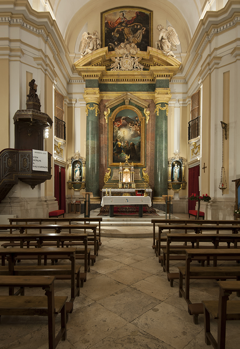 Iglesia perteneciente a Patrimonio Nacional, de estilo neoclásico, construida en el siglo XVIII por orden de Carlos III y obra del arquitecto Marcelo Fontón. El diseño de planta de cruz latina culmina en el altar mayor, donde se encuentra el lienzo del pintor y teórico neoclásico Antón Raphael Mengs. Aunque dotada de una importante luz natural, esta queda disminuida por la altura escasa de la nave central.
