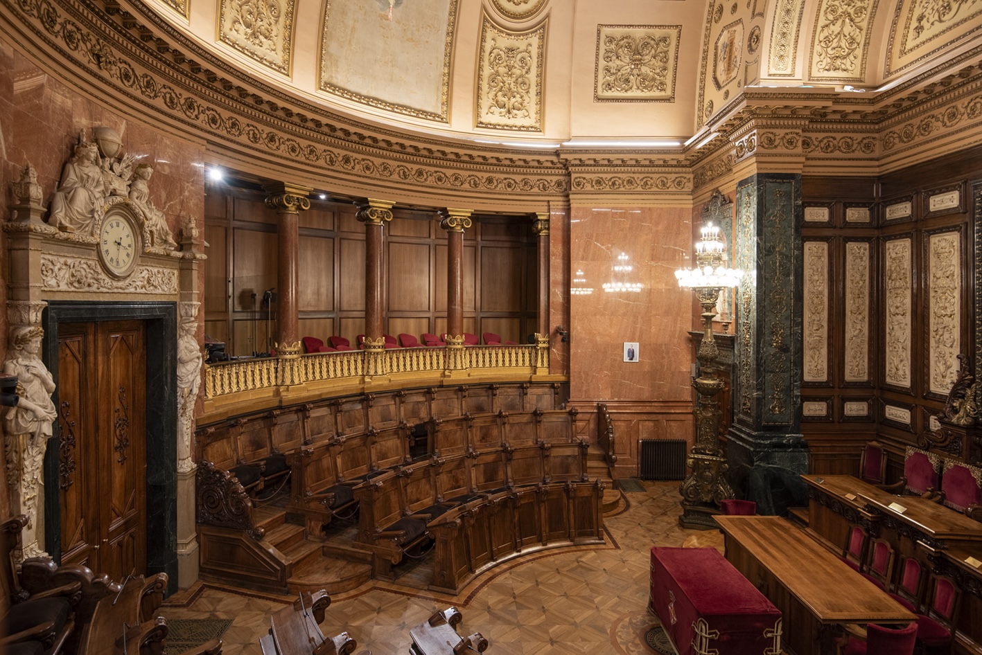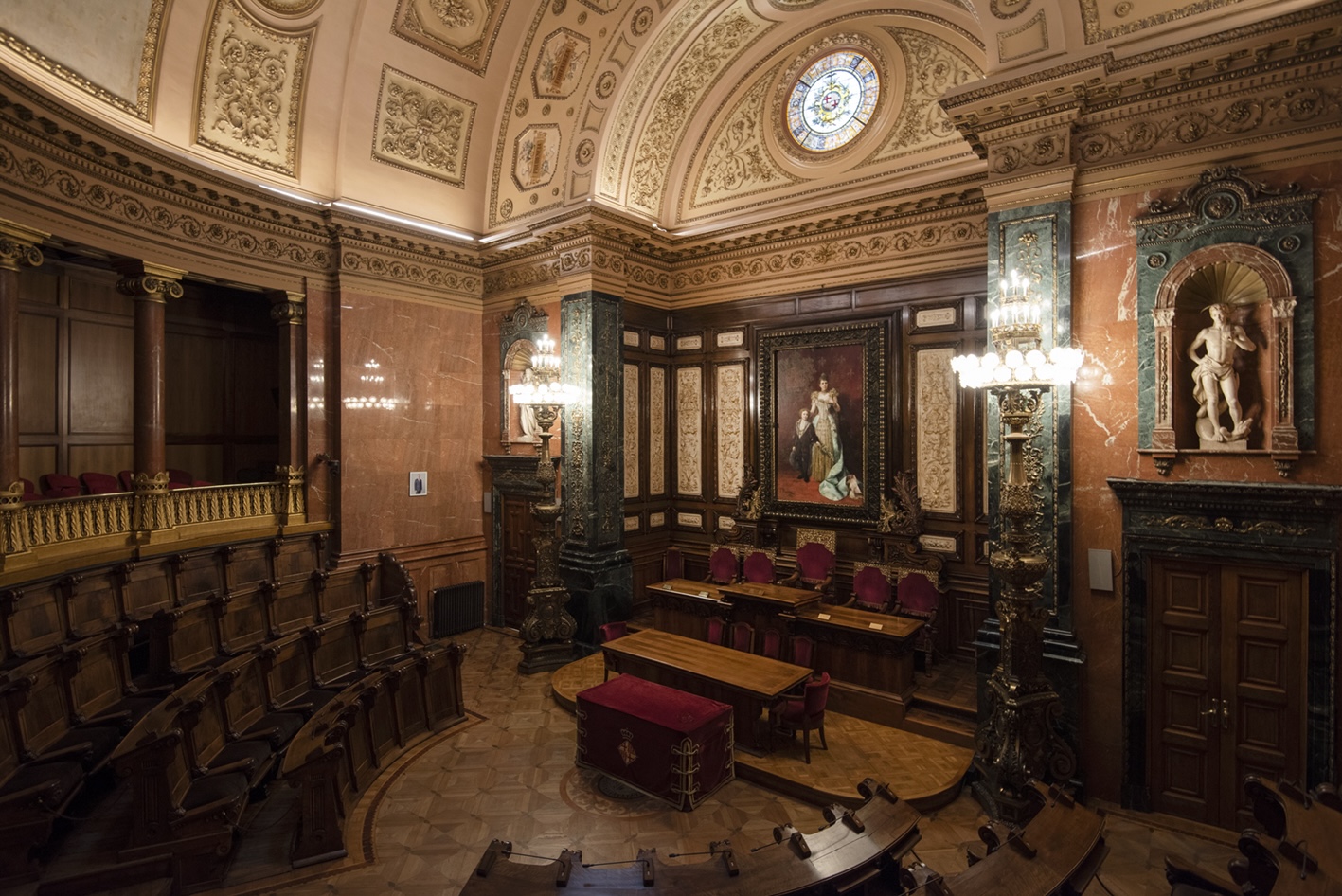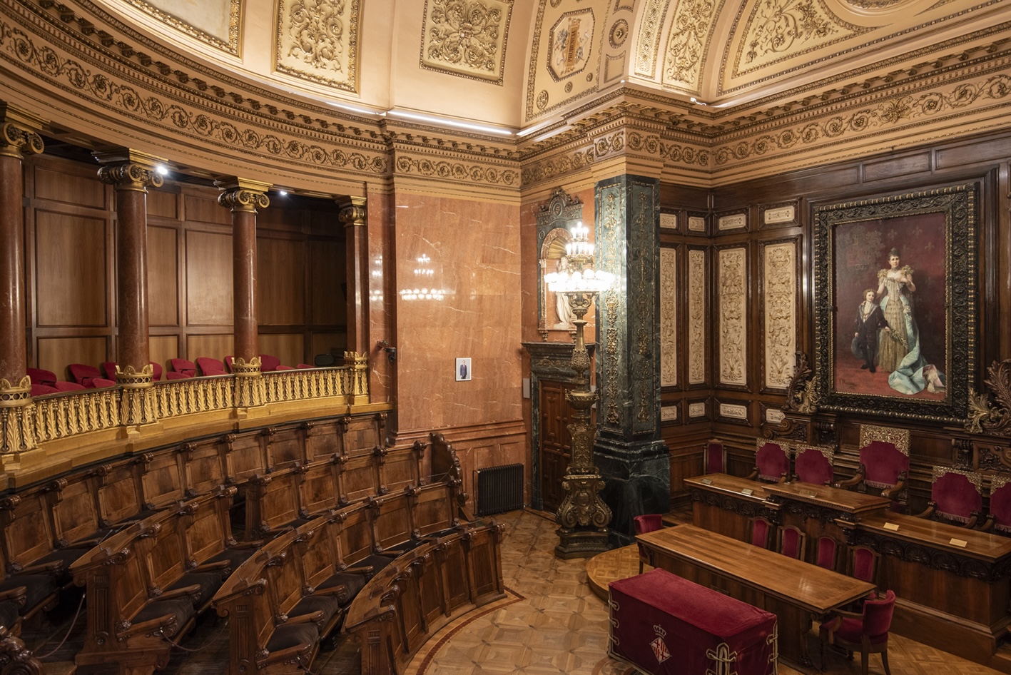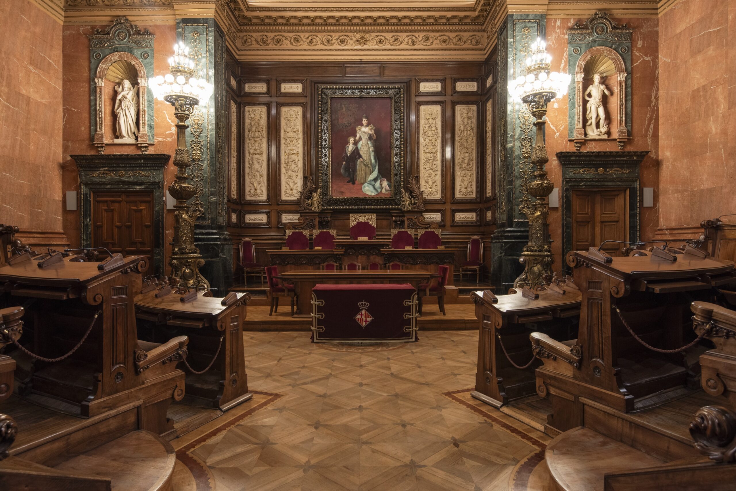 El salón Carles Pi i Sunyer, en el Ayuntamiento de Barcelona, construido en 1860, sirve como salón de plenos de la corporación. Este espacio destaca por su impresionante decoración artística, que incluye un mural de Claudio Lorenzale, un retrato de la reina regente de Francisco Masriera, así como diversas esculturas, mobiliario y cristaleras de reconocidos artistas catalanes.