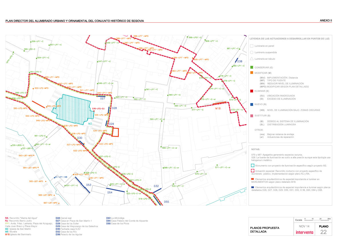 Un plan en el que se abordó de manera integral la transformación del paisaje nocturno de la ciudad y que, como tantos otros, duerme el sueño de los justos en alguna oficina municipal. Quizá el único de su naturaleza que mereció el montaje de una exposición con fines divulgativos en la sala de la Alhóndiga de Segovia y que fue visitada por numerosos vecinos.